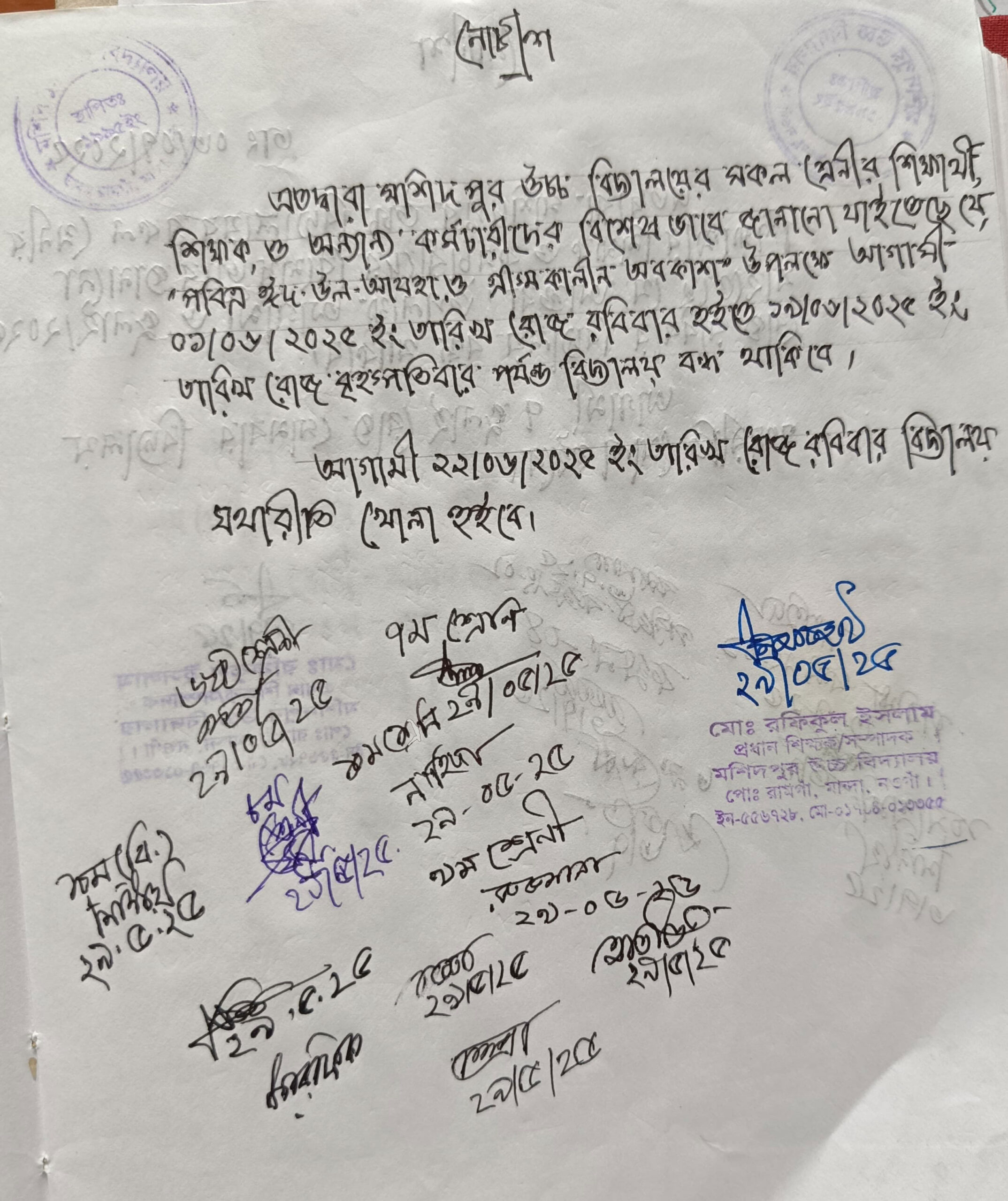 পবিত্র ঈদ-উল আযহা ও গ্রীষ্মকালীন অবকাশ